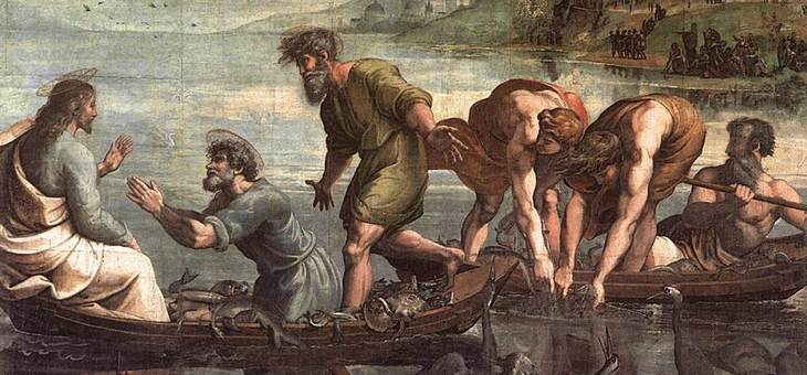 Trudna sytuacja, nieudany nocny połów. Apostołowie wrócili z pustymi sieciami, a tu jeszcze jakiś nieznajomy pyta z brzegu: Ułowiliście coś? Nic nie zapowiada cudu; nie ma też wymówek, że nie umieją łowić. Jest tylko zachęta: Zarzućcie sieć po prawej stronie łodzi, a znajdziecie. Co za różnica, prawa czy lewa strona łodzi? Czy warto jeszcze raz się trudzić, choć doświadczenie rybackie nie wróży sukcesu? A jednak zarzucają sieci. Wykonują polecenie Nieznajomego. Jest to z ich strony akt wiary i posłuszeństwa.