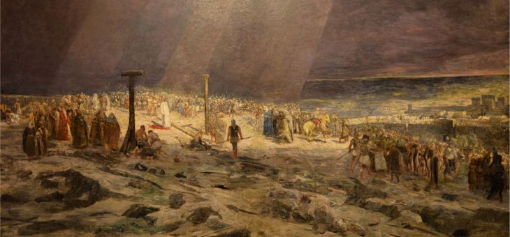 Wykopany dół, w którym stanie krzyż z rozpiętym Zbawicielem – gromada katów podaje sobie z rąk do rąk narzędzia męki – Centurion rzymski raz jeszcze wywołuje wyrok w tyle następstw płodny, który miał zmienić postać całego świata.