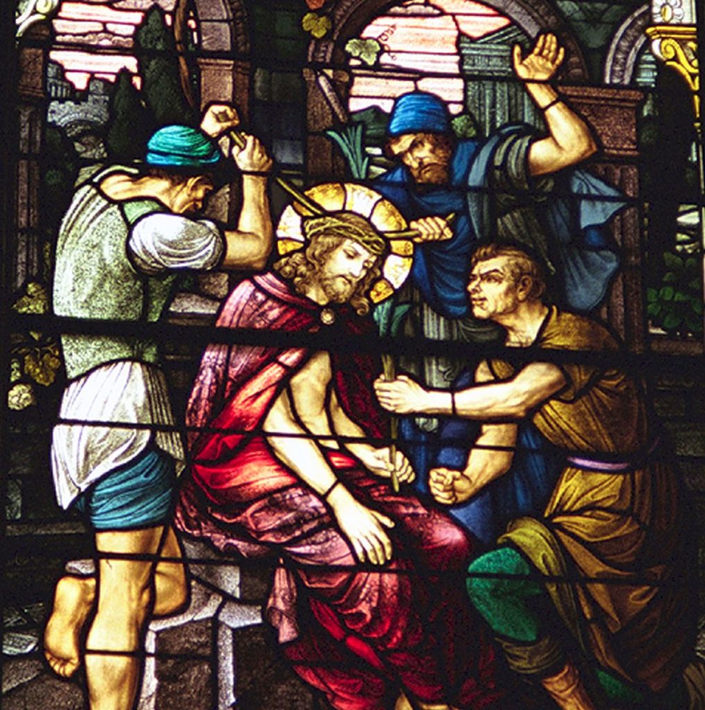 Dla wyszydzenia królewskiej godności Jezusa rzymscy żołnierze wtłoczyli na Jego głowę koronę cierniową. Wręczyli Mu też „insygnia królewskie”: zamiast purpury – czerwony płaszcz żołnierski i do prawej ręki dali Mu trzcinę – mającą wyobrażać berło. Tak ucharakteryzowanemu Jezusowi składali szyderczy hołd – przyklękali przed Nim i drwiąco Go pozdrawiali jako króla. Bili Go trzciną po głowie oraz pluli Mu w twarz. Jezus – Król boleści cierpiał nie tylko fizycznie, ale i moralnie, znosząc hańbę poniżenia. Dane Jezusowi rekwizyty miały być karykaturą właściwych insygniów królewskich. Nasz Pan nie rozstał się jednak z nimi aż do końca męki. Umarł na krzyżu jako Król-Mesjasz.